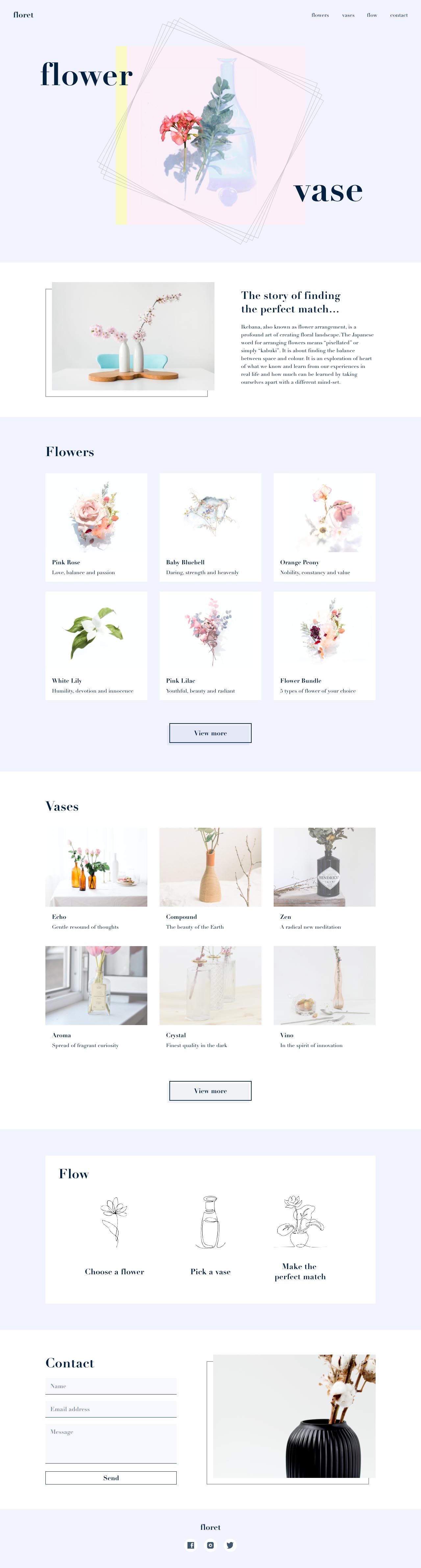 There is always a perfect match in everything that brings harmony, unity and balance. This as well is reflected in the choice of flower and vase. Floret is a service that helps users to discover the perfect match according to their needs - be it a gift for their loved one, a celebration of an important event, or a decoration in the interior.