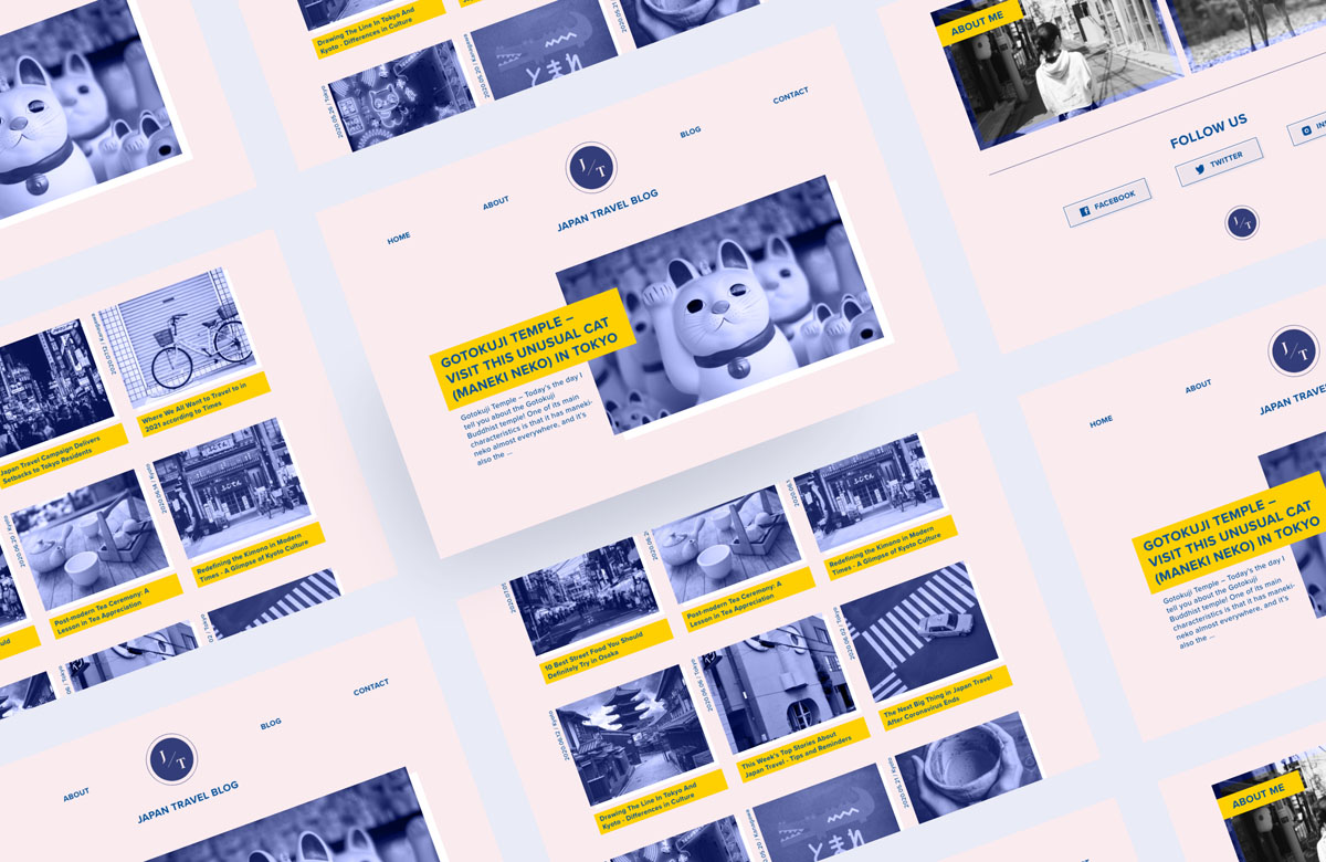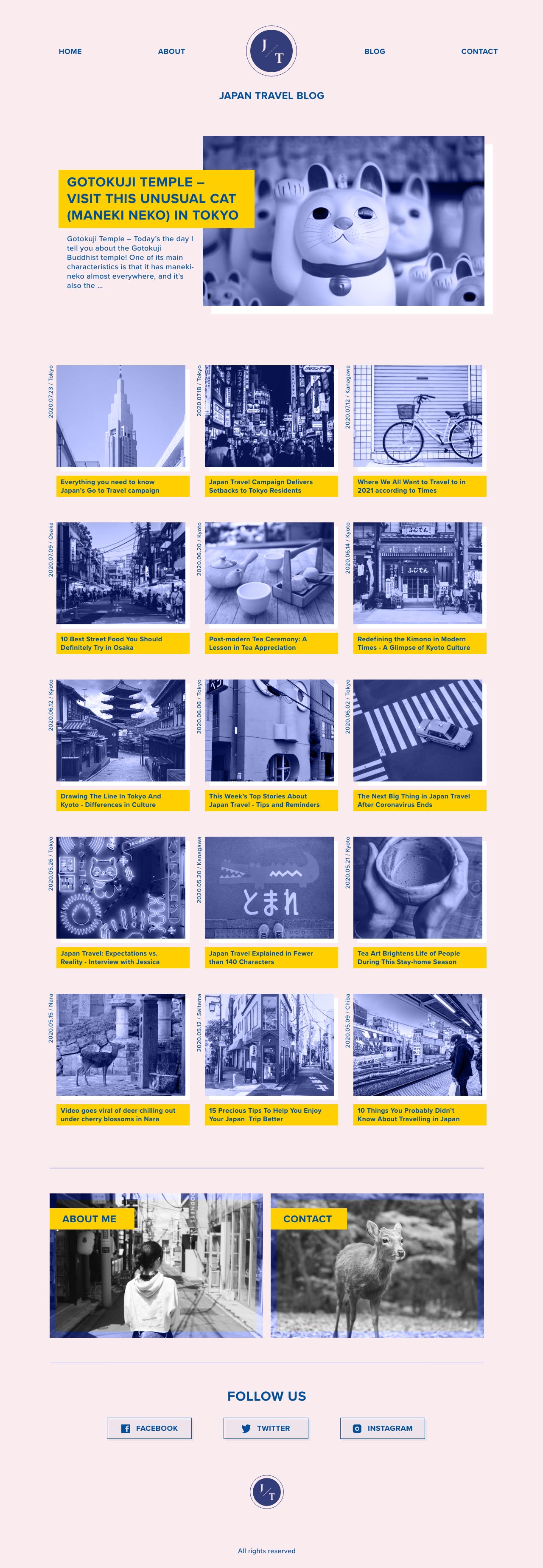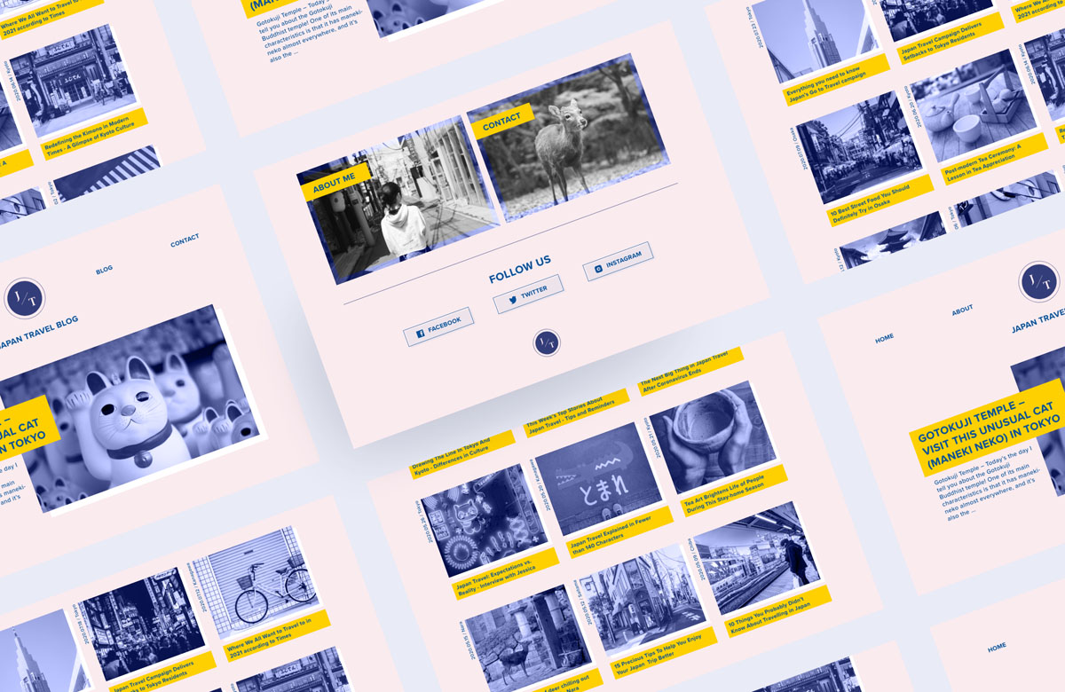 This blog is a showcase of some queer and little-known spots in Japan. The eccentricity is reflected in the choice of the unusual colour combination of pink, navy and yellow. This site also serves as a record of memories with the navy-tinted images lined up like a vintage photo album.