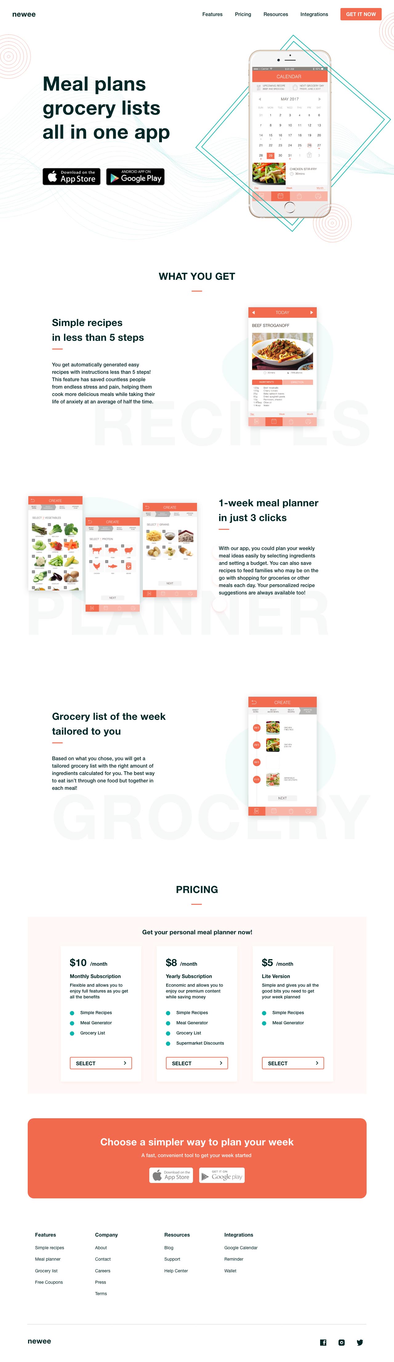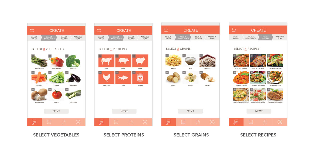 This new service allows users to choose a set of ingredients, such as grains, vegetables and proteins. From those selections, a list of meal ideas will be generated for users to browse and select. Upon selecting their meal plans, a grocery list will be automatically created. The user interface is clean and sleek without wordy sentences. It also allows smooth and intuitive navigation through the use of icons.