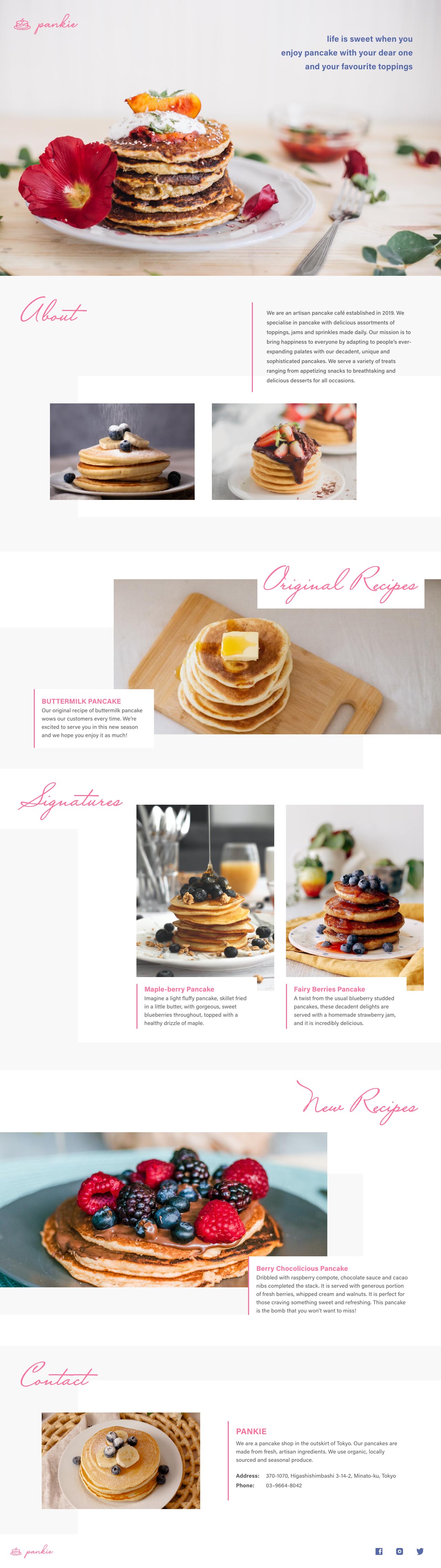 Pankie strives to bring happiness to people by adapting to people’s ever-expanding palates with its unique and specially crafted pancakes. The site is designed to match the brand image of a refined and exquisite cafe that serves pancakes of the finest quality.